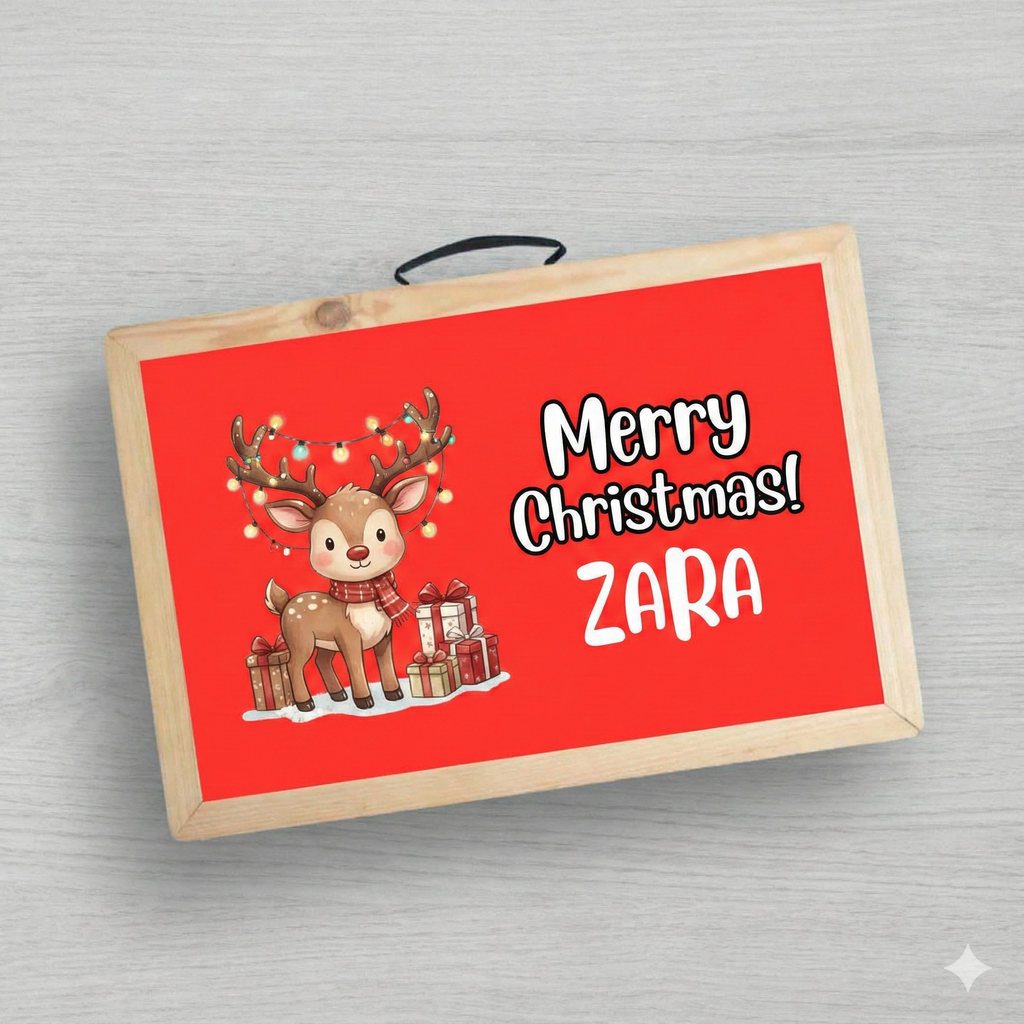 Choose between 4 different warm, Christmassy designs- Christmas Tree, Santa, Snowman and Reindeer and personalize with your child’s name to add a special touch.