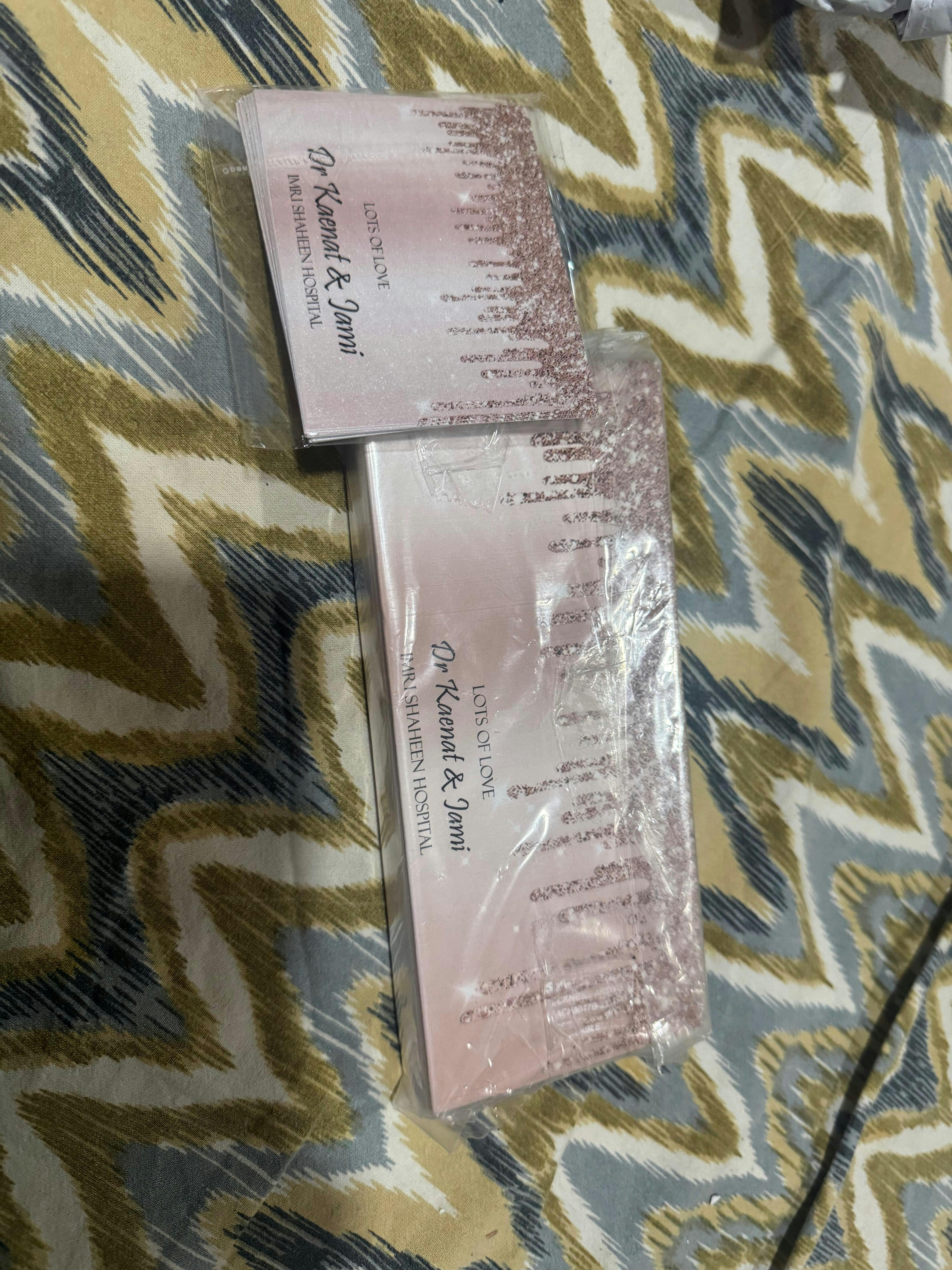 The printed wedding card featuring our names was executed well, and the overall quality of work was satisfactory. I am pleased with the final product. While the cost was somewhat elevated, the experience was generally positive.