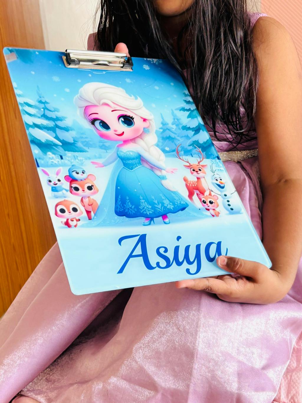 Enhance your child's school essentials with a custom writing pad! Made from high-quality 3mm acrylic and adorned with vivid prints, our personalised clip boards are both durable and lightweight. They feature a stainless steel clip for easy hanging and a personalized touch with your child's name. Ideal for exams, classwork, art projects, or home use, this clipboard brings a splash of fun to school supplies. It also makes a delightful gift for birthdays and other special occasions.