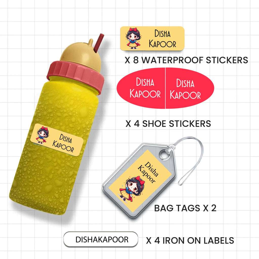 This set contains assorted waterproof name stickers which are essential to label children’s belongings for school. This small set often suffices the labeling requirement for a child’s academic year.