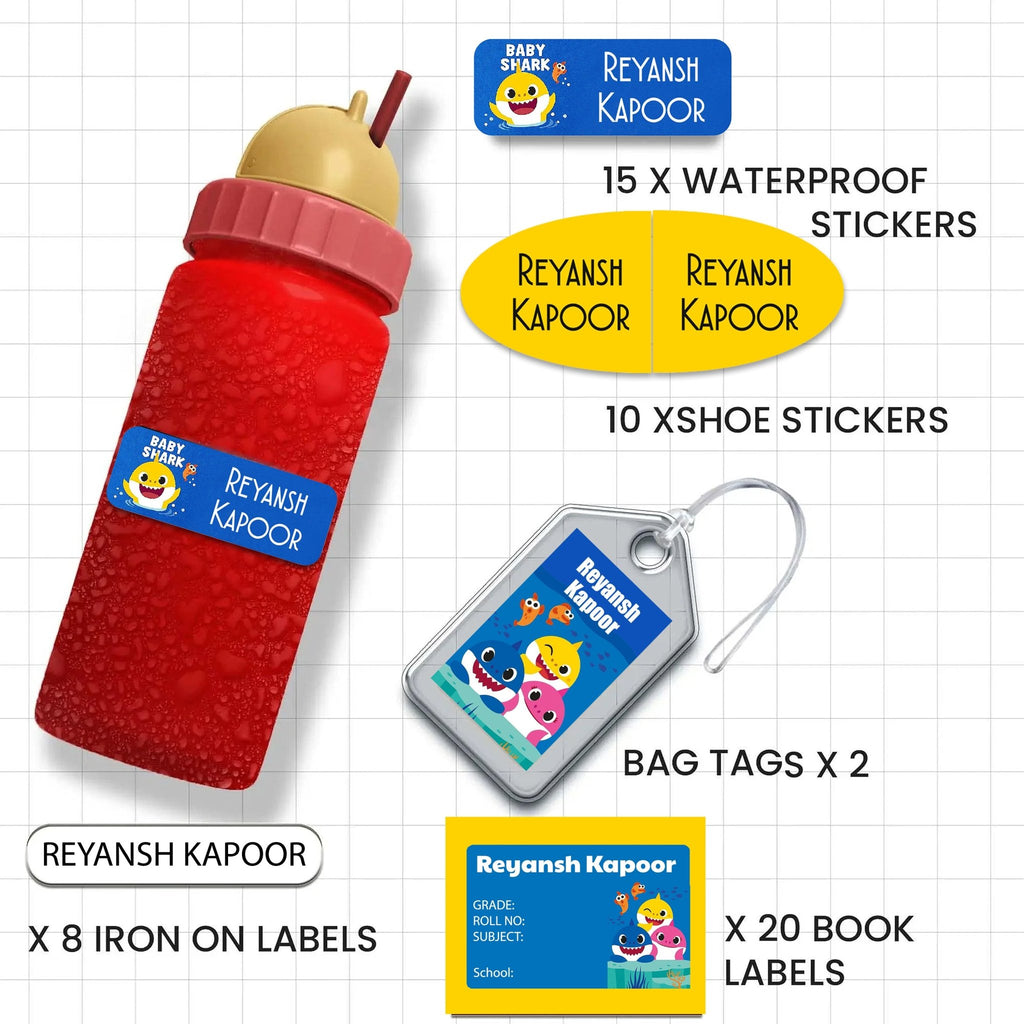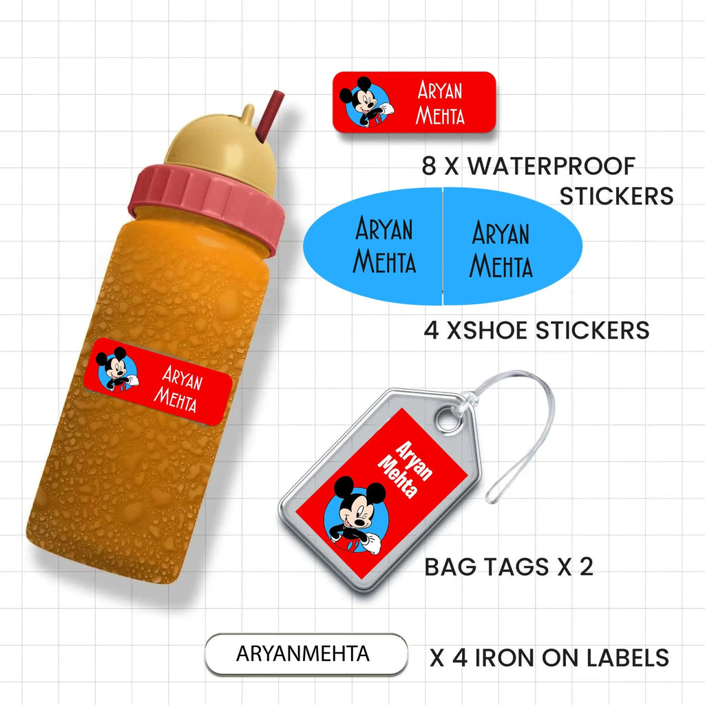 Contents: 8 Design Waterproof Stickers, 4 Shoe Stickers, 2 Bag tags and 4 Iron On Garment Labels.