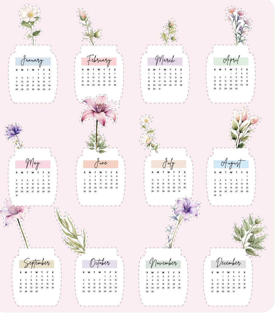 - 12 x Unique Floral Cutouts (Jan–Dec)