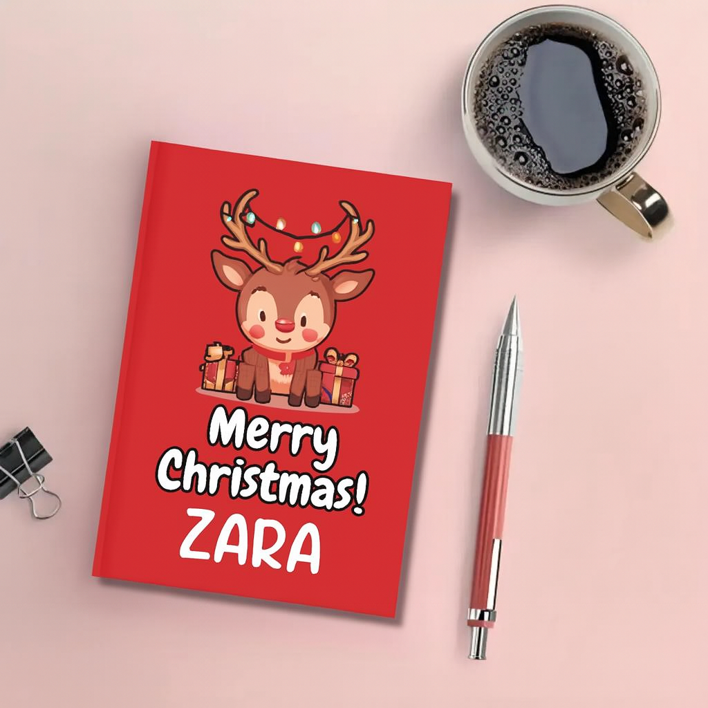 Discover the joy of creativity and organization with our stylish A5 Custom Notebooks! Choose between 4 different warm, Christmassy designs- Christmas Tree, Santa, Snowman and Reindeer, and personalize with your child’s name to add a special touch.